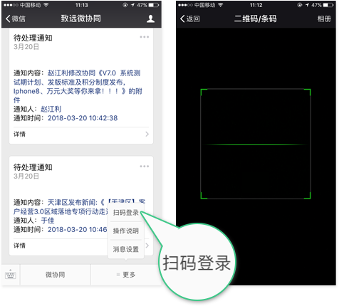 WeChat scan code uses the mobile phone WeChat end to securely log in to the V5 collaborative security management platform. To use it, it is necessary to pay attention to the Zhiwei micro-collaborative public account. Zhiyuan Micro-Collaboration is a product jointly launched by the company and the V5 collaborative security management platform. It provides the products of Zhiyuan V5 collaborative office products and WeChat "service number" and "enterprise number". Splicing integration brings a fast, efficient, secure and unified entrance to your enterprise mobile office.